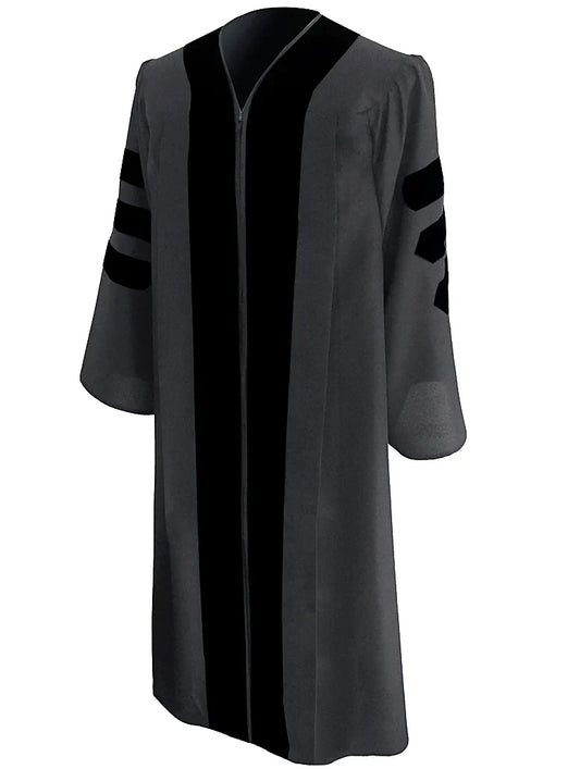 Each gown boasts bell sleeves adorned with three black velvet chevrons, paying homage to the timeless tradition of doctoral attire. Our doctoral hoods are meticulously designed to reflect the distinct achievements of all doctoral graduates, ensuring that you stand out on your special day.